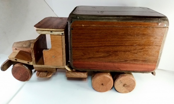 • Grande  Caminhão  baú em madeira totalmente artesanal , med.49 x 18 x 24 cm , em bom estado ,.
